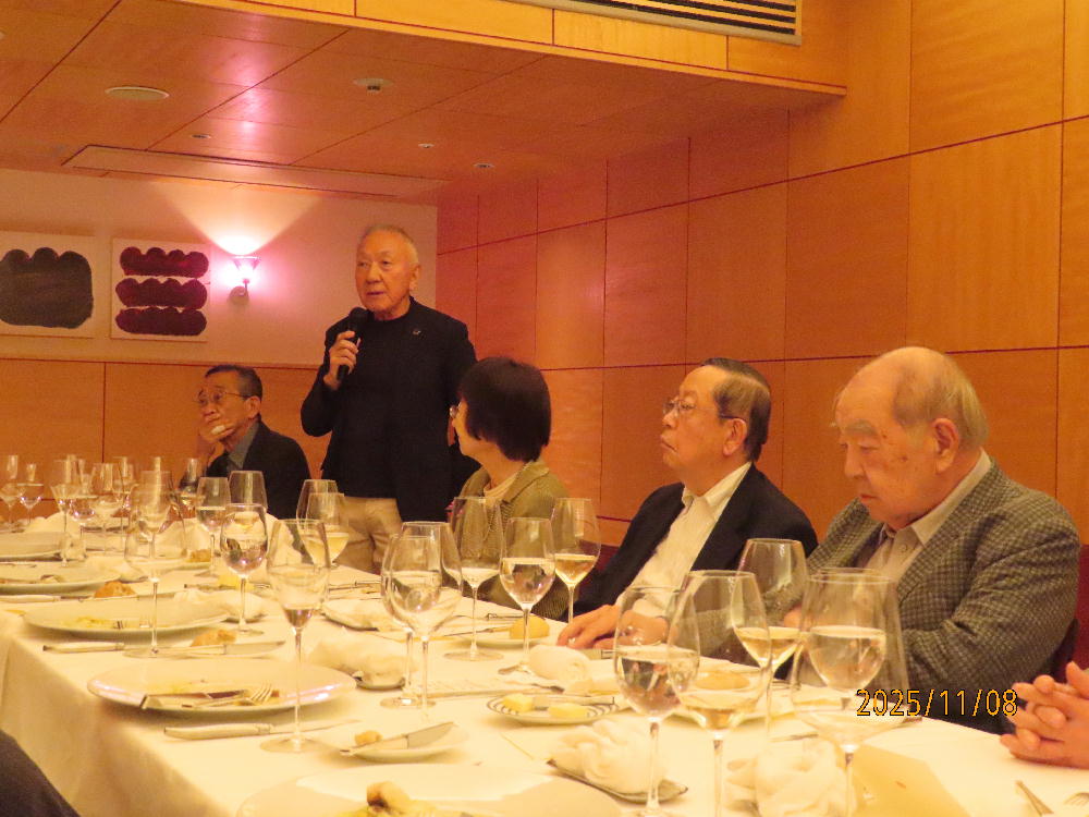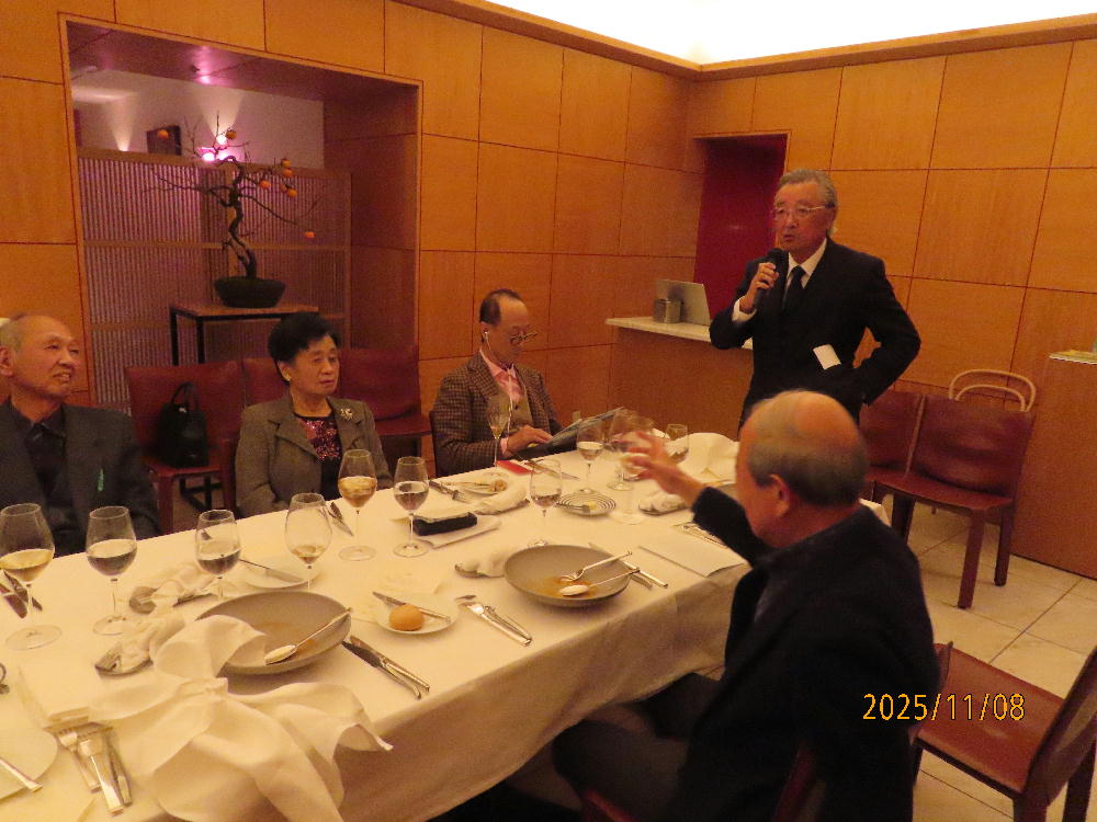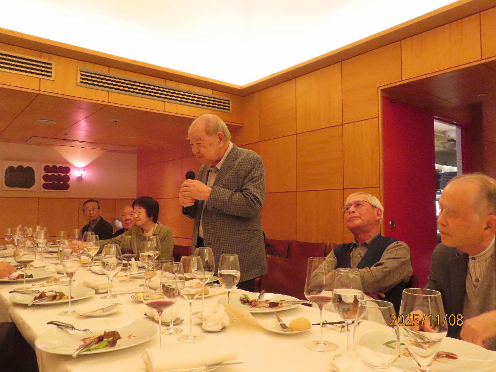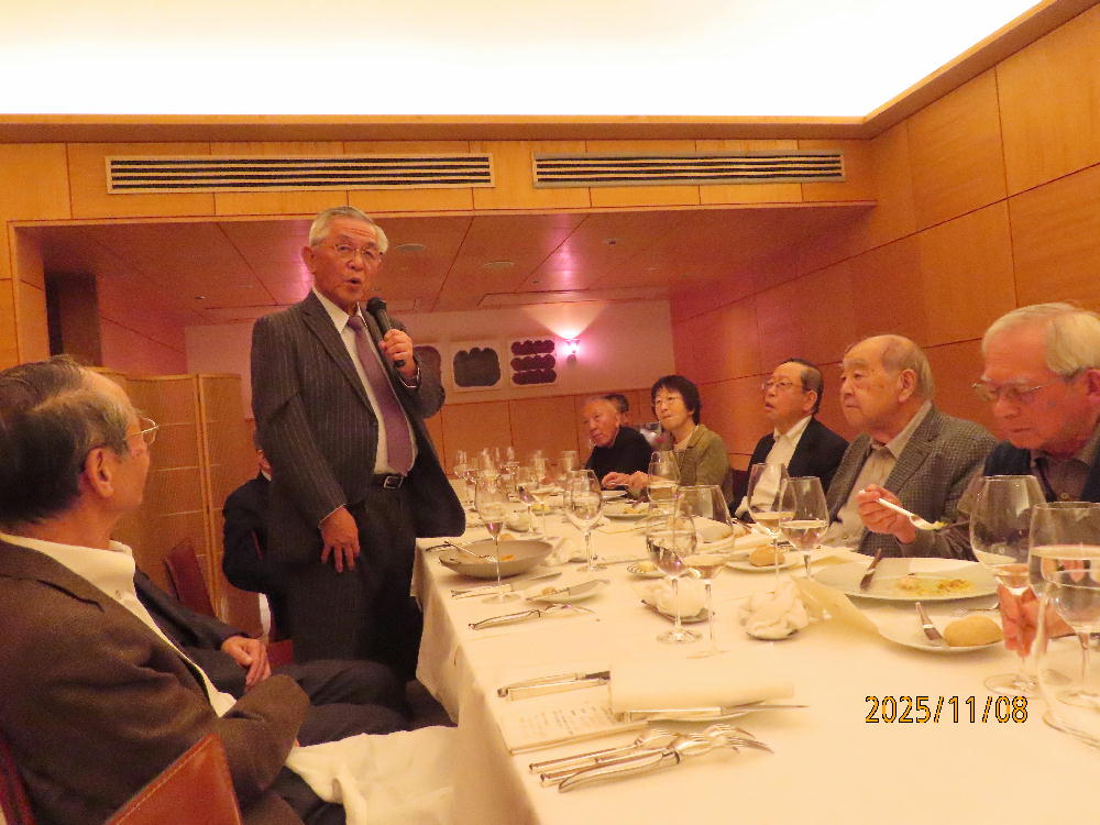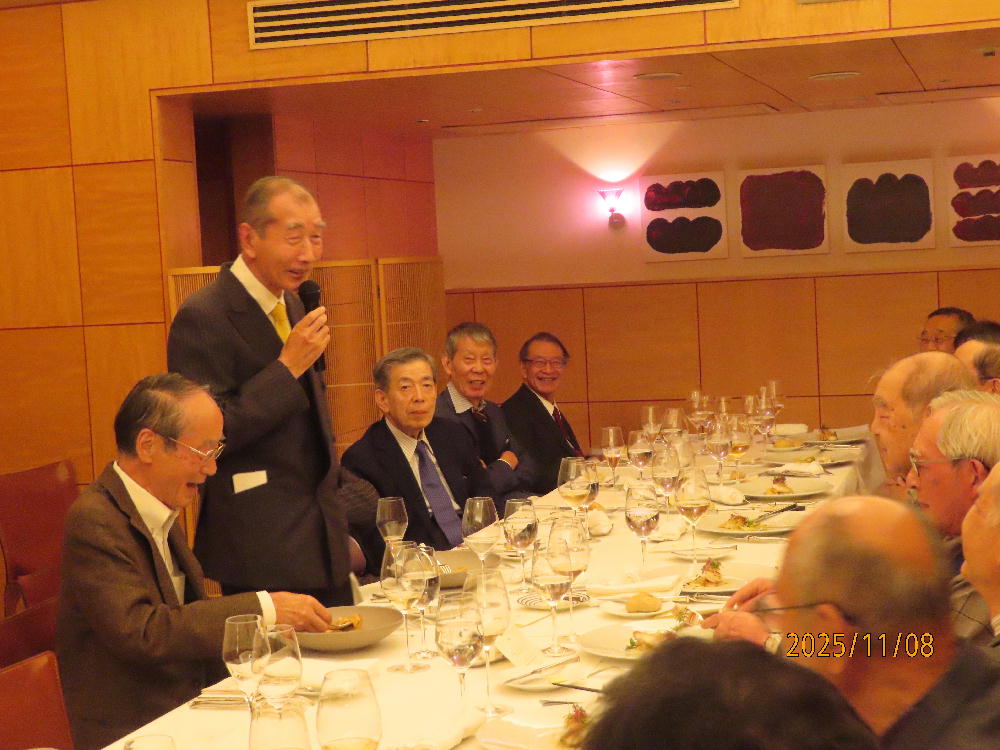 乾杯の前に、いつものように一席ぶつ加藤信夫君